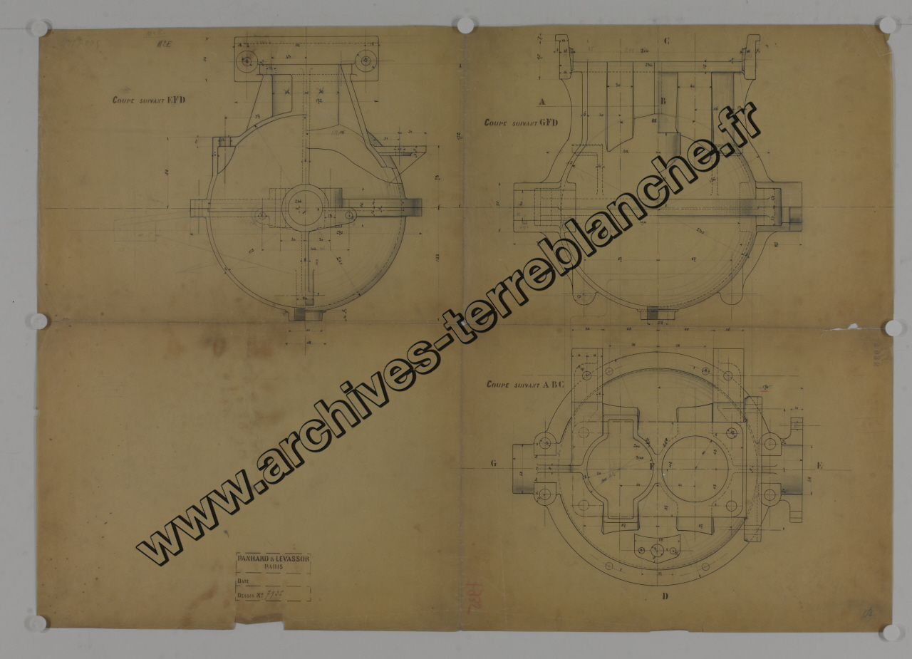 Panhard et Levassor. - Moteur M2E 4CV : épure du bâti supérieur.