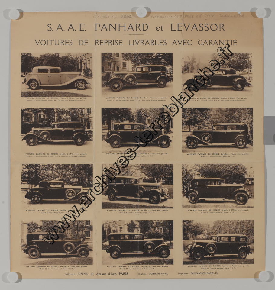 Catalogue de reprise 1937, voitures 1932.