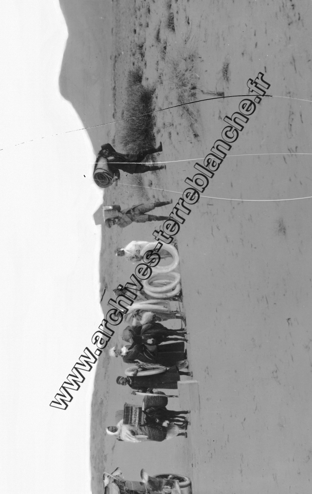 Voiture Panhard embourbée dans le sable en Afrique.