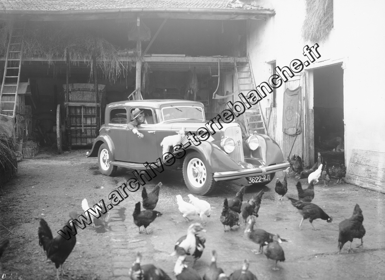 Le coureur cycliste Antonin Magne et sa panoramique 6CS RL-N dans sa propriété à Livry-Gargan.