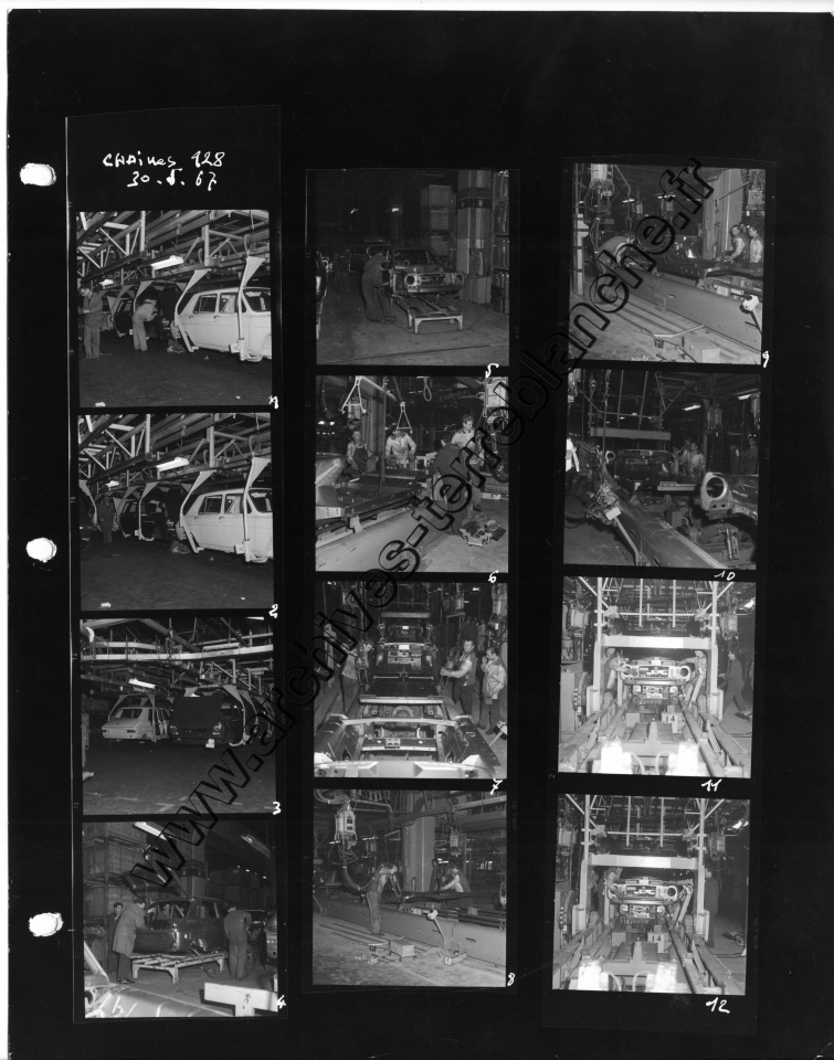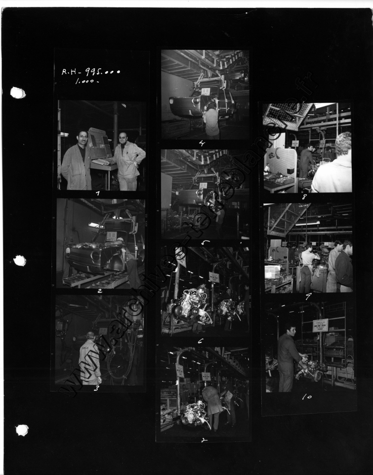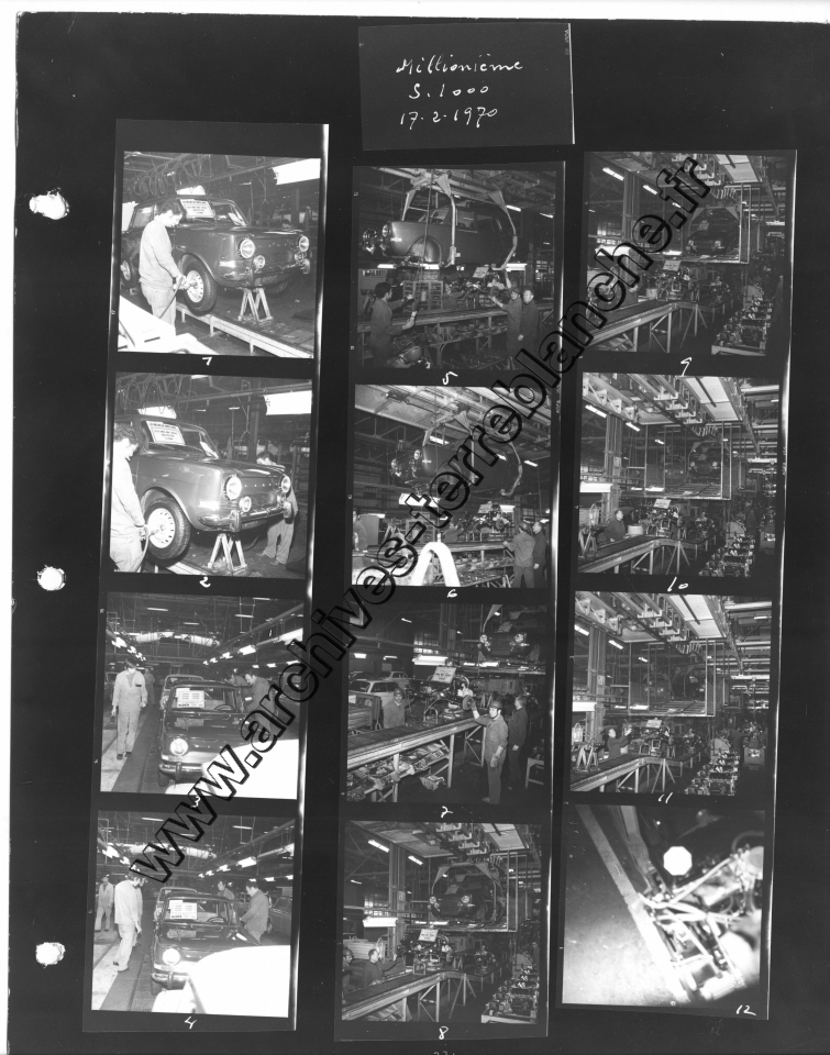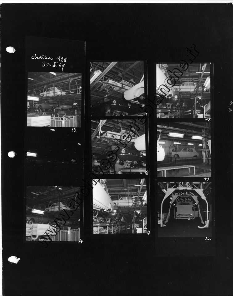 Chrysler France.- Processus de fabrication. 1000000ème Simca 1000, protection trempé mi-caisse, ligne peinture, ferrage, montage (Chrysler 180) , pistolage laque, retouche peinture bout d'usine, bondérisation, phosphatation (Simca 1000) (Poissy, Tours)