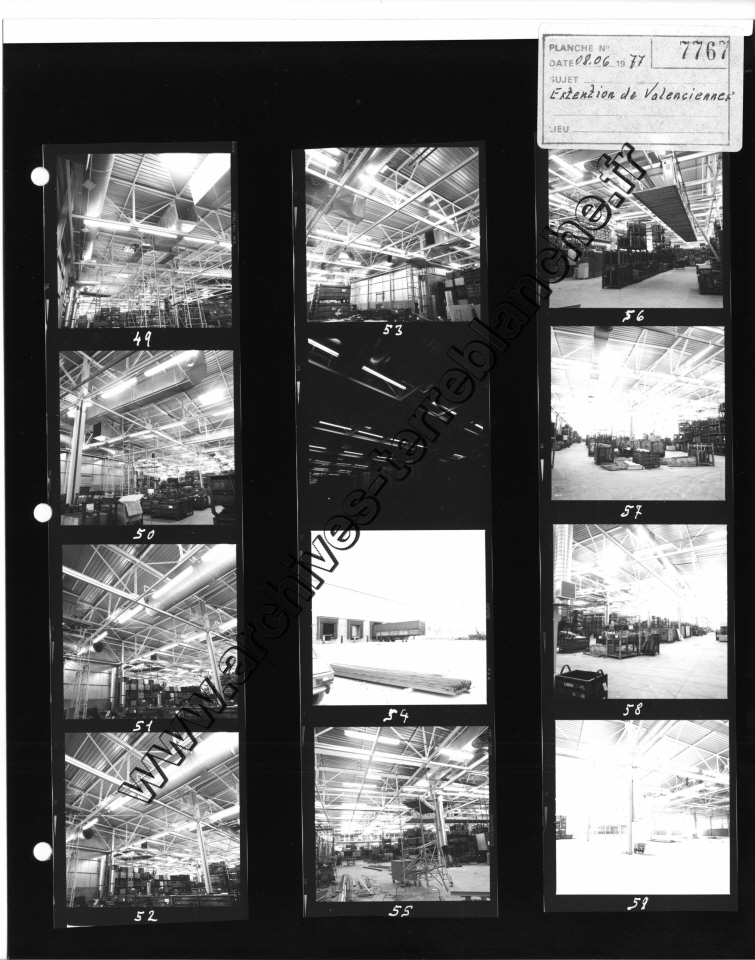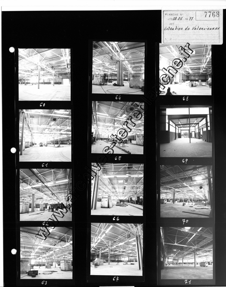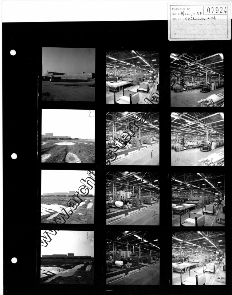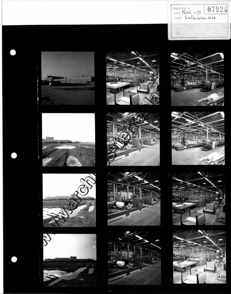 Chrysler France.- Usine de Valenciennes, vues de chaines, vues de bureaux, vues de bâtiments, construction