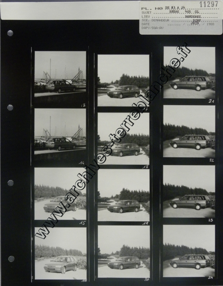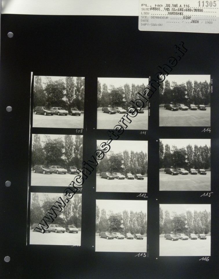 Automobiles Peugeot.- Gamme 405. (Maroc, Lyon). Modèles Turbo 16, GR, MT16, SRI, SRD Turbo, GL
