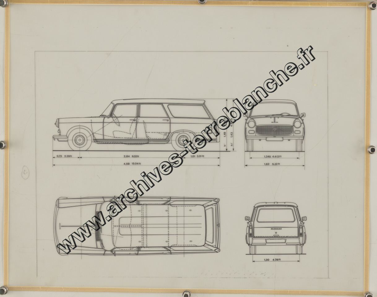 Peugeot 404, représentation pour dessin : schéma vue extérieur