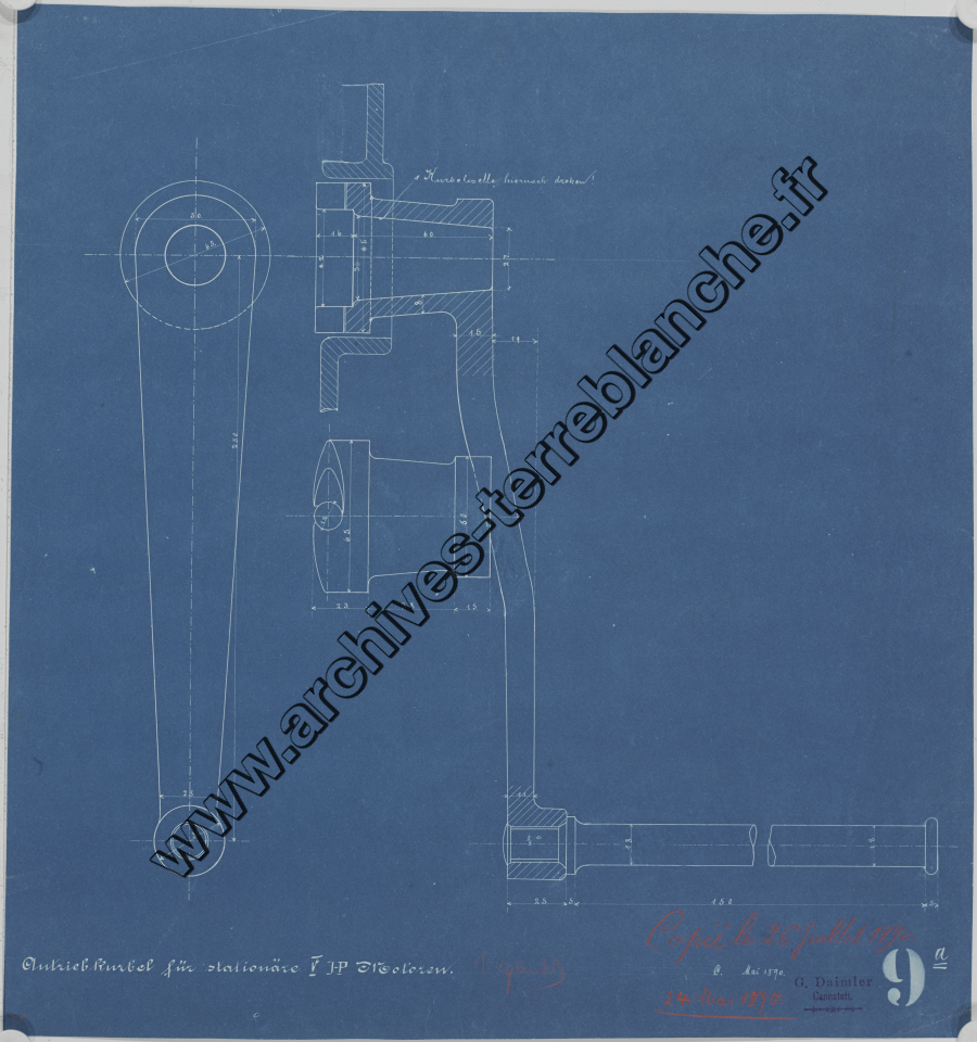 Moteur fixe Daimler 5 chevaux 2 cylindres, sous ensemble manivelle [guidage] : vue d'ensemble