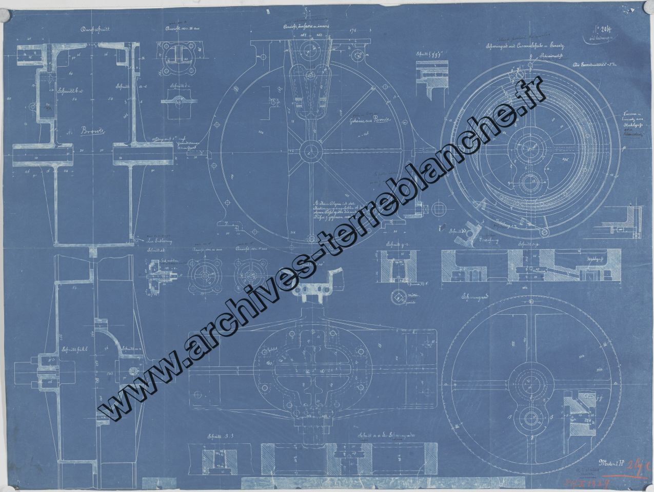 Moteur fixe Daimler 1 cheval 2 cylindres, sous ensemble volant : plan d'ensemble