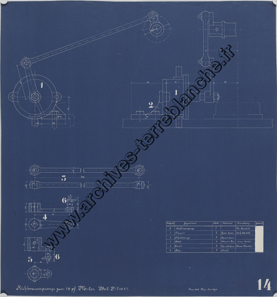 Moteur fixe Daimler B1029 10 chevaux 4 cylindres, sous ensemble pompe à eau : vue d'ensemble