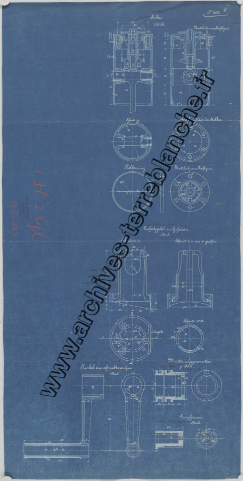 Moteur fixe Daimler 1 cheval 2 cylindres, sous ensemble piston : plan d'ensemble