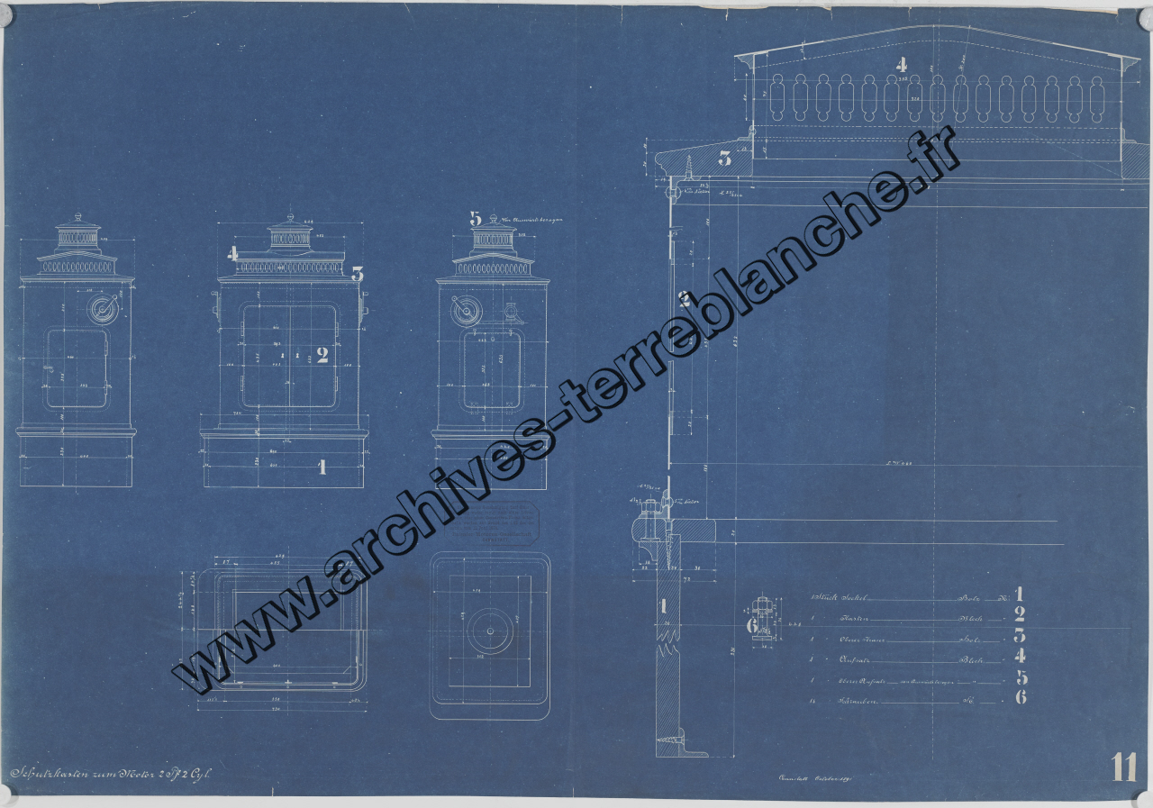 Moteur fixe Daimler [pour navires] 2 chevaux 2 cylindres, sous ensemble boîtier de protection : plan d'ensemble