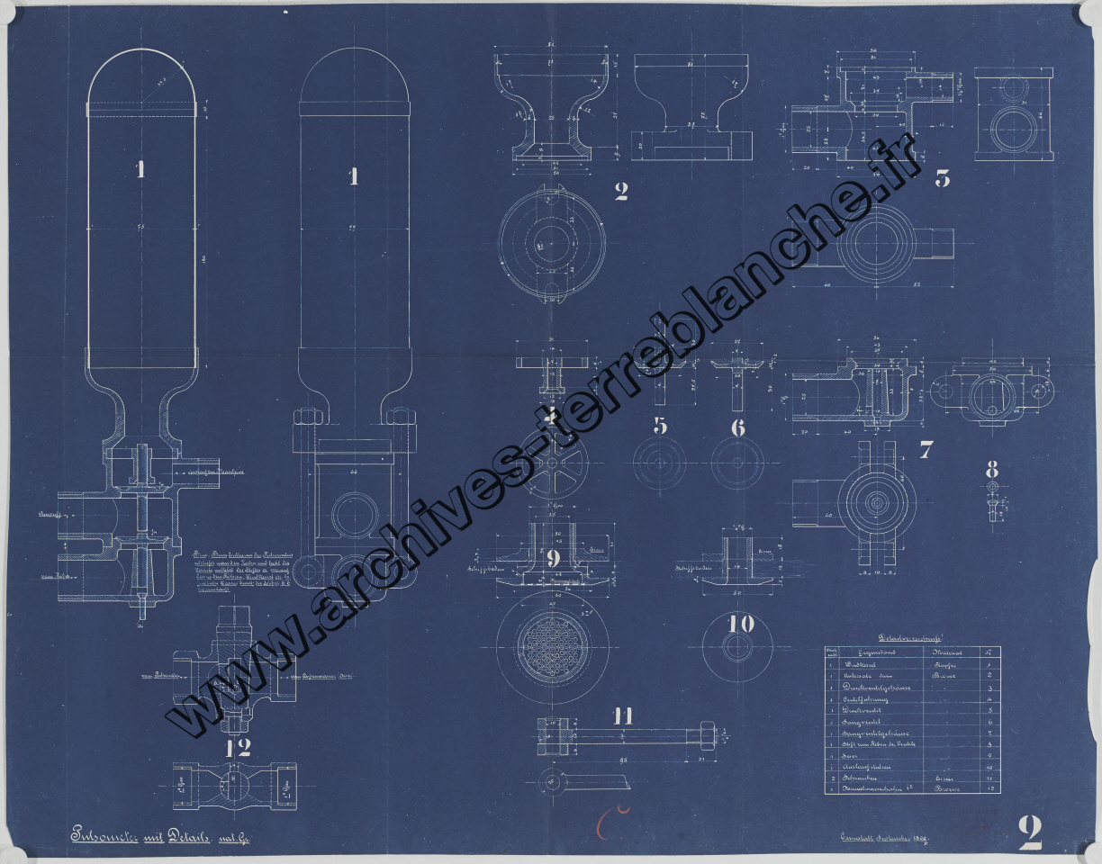 Moteur fixe Daimler [pour navires] 2 chevaux 2 cylindres, sous ensemble pulsomètre : plan d'ensemble