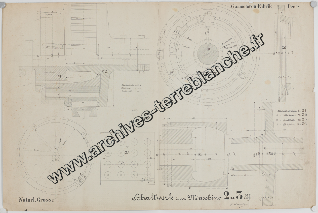 Moteurs fixes Deutz [à gaz] 2 chevaux et 3 chevaux, sous ensemble disque de commutation : plan d'ensemble