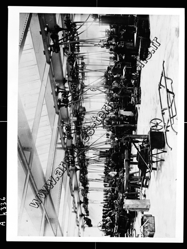 Usine, vue intérieure des ateliers, présence d'ouvriers.