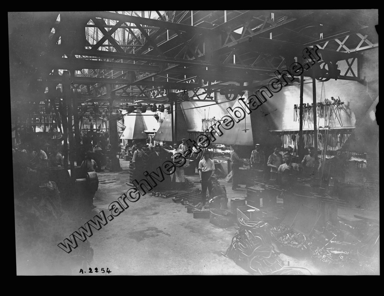 Atelier des Forges de Beaulieu, vue intérieure présence d'ouvriers.