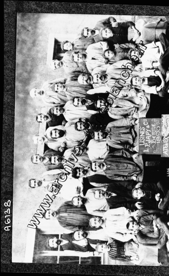 Ouvriers de l'usine d'horlogerie de Seloncourt J.P Japy & Cie Berne posant pour une photographie de groupe.