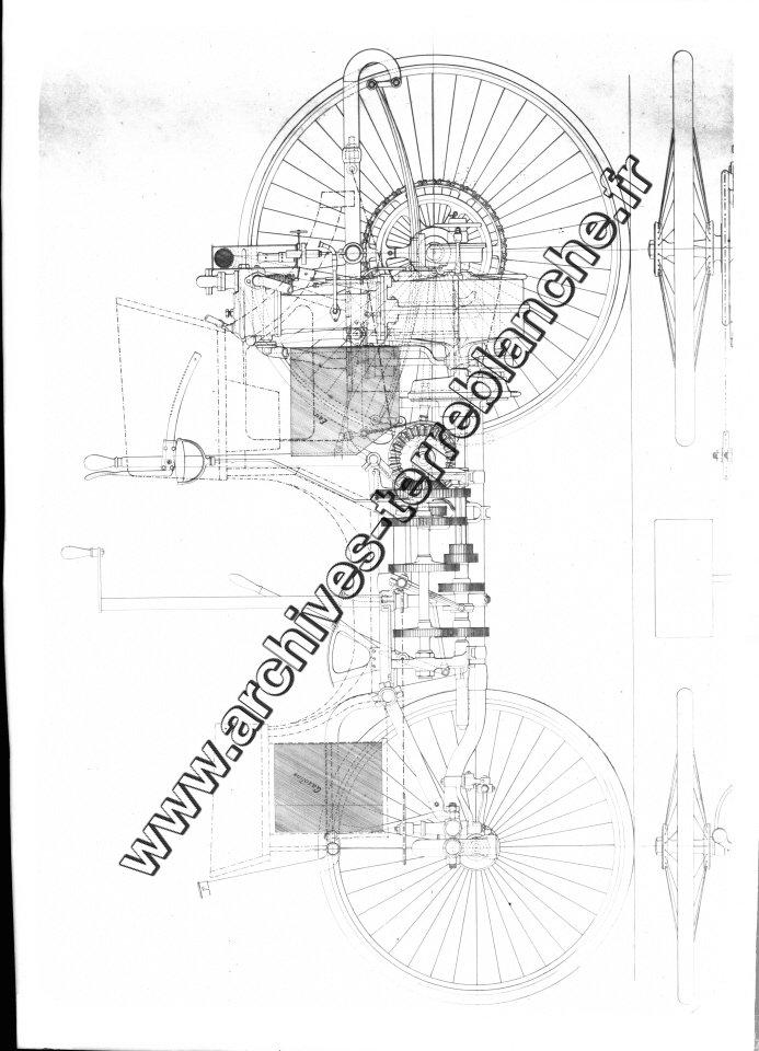 Plan d'un châssis de voiturette Peugeot équipée du moteur Panhard licence Daimler deux cylindres en V Type 9.