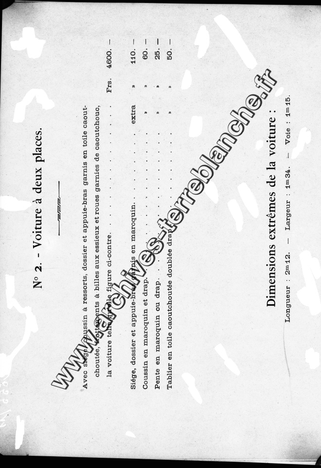 Catalogue de voitures "les Fils de Peugeot Frères".- Type 1 à 5 avec photographies des modèles et fiches techniques d'avant 1896