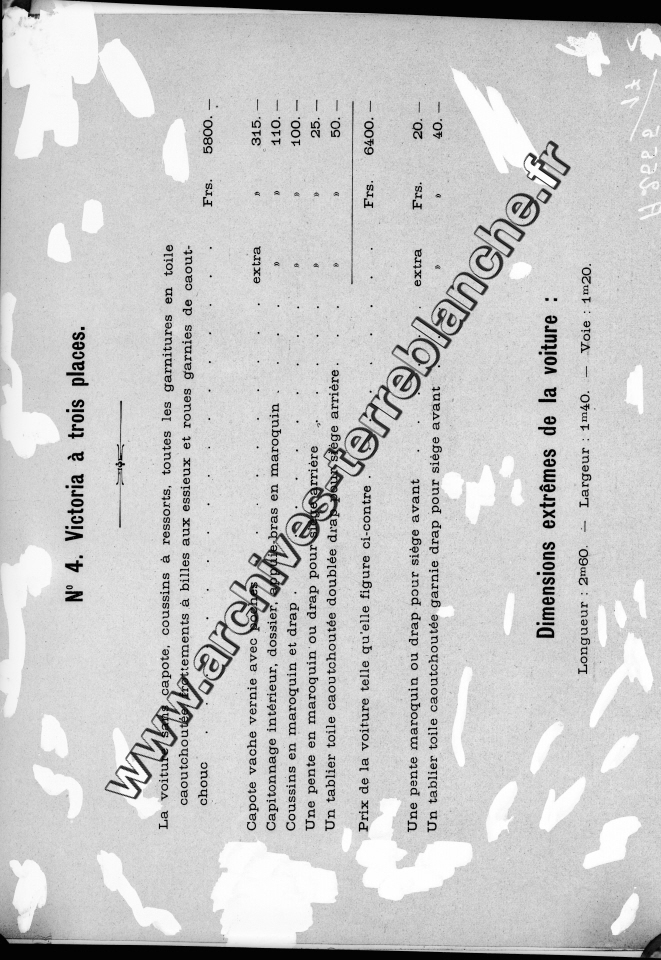 Catalogue de voitures "les Fils de Peugeot Frères".- Type 1 à 5 avec photographies des modèles et fiches techniques d'avant 1896