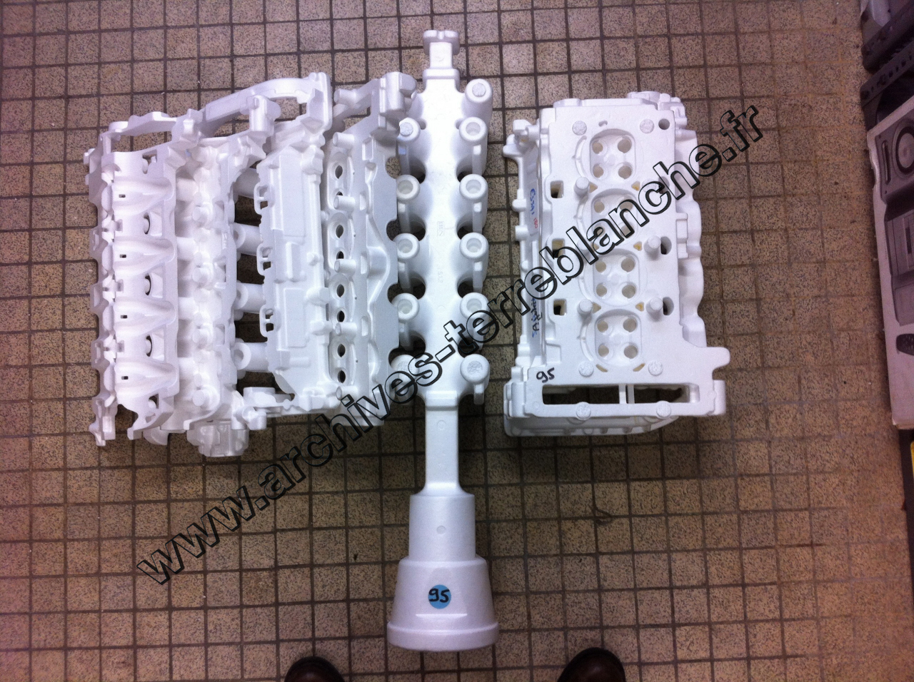 Grappe de 2 culasses polystyrène essence alu (moulage en PMP) Un descendant+2 culasses dont 4 parties dont une colée.