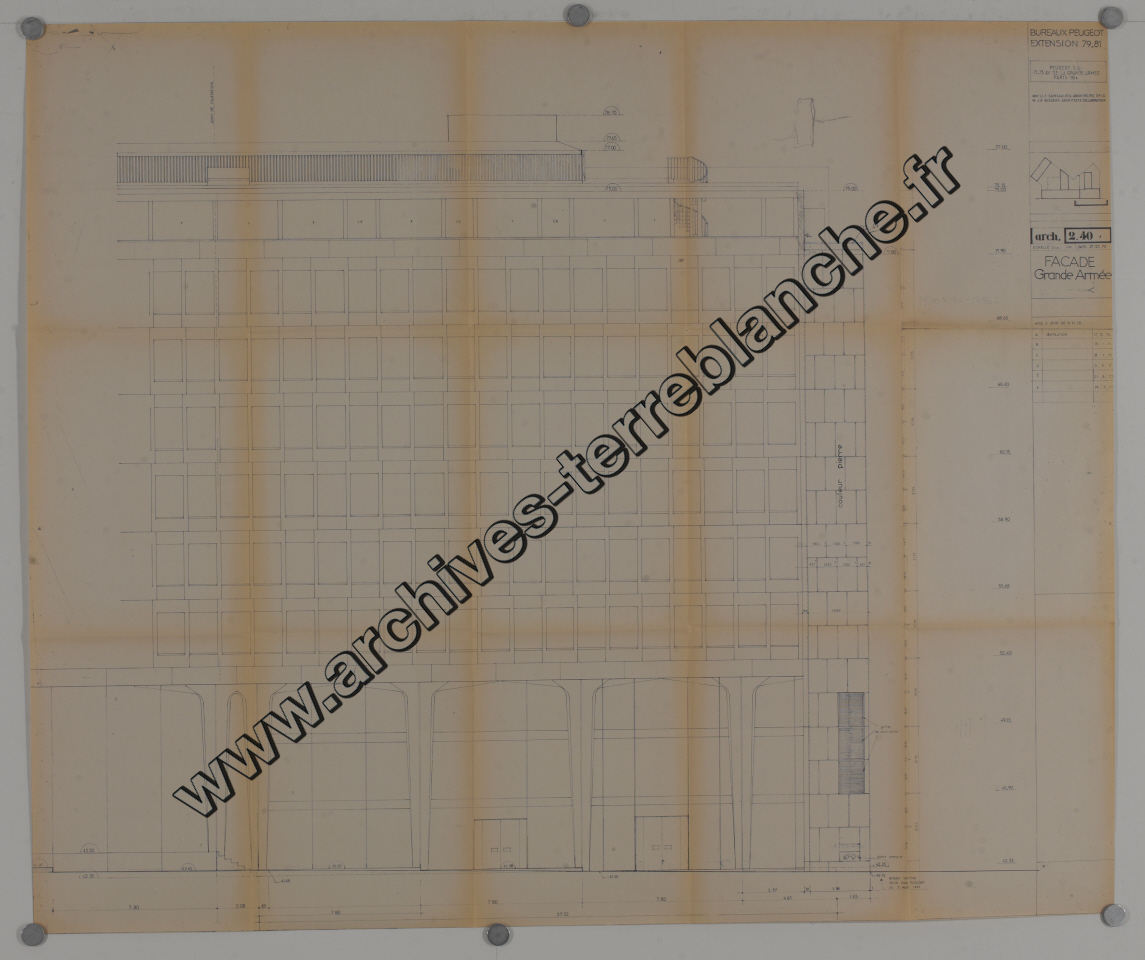Peugeot SA. - Siège social de Grande-Armée, façade avenue de la Grande Armée : élévation.