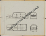 Peugeot 404, représentation pour dessin : schéma vue extérieur