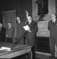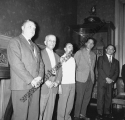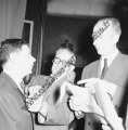 Réception le 16 décembre 1954 à la Maison de la Chimie des journalistes, amis et de leurs enfants pour le 1ère anniversaire de la sortie en série de la Dyna